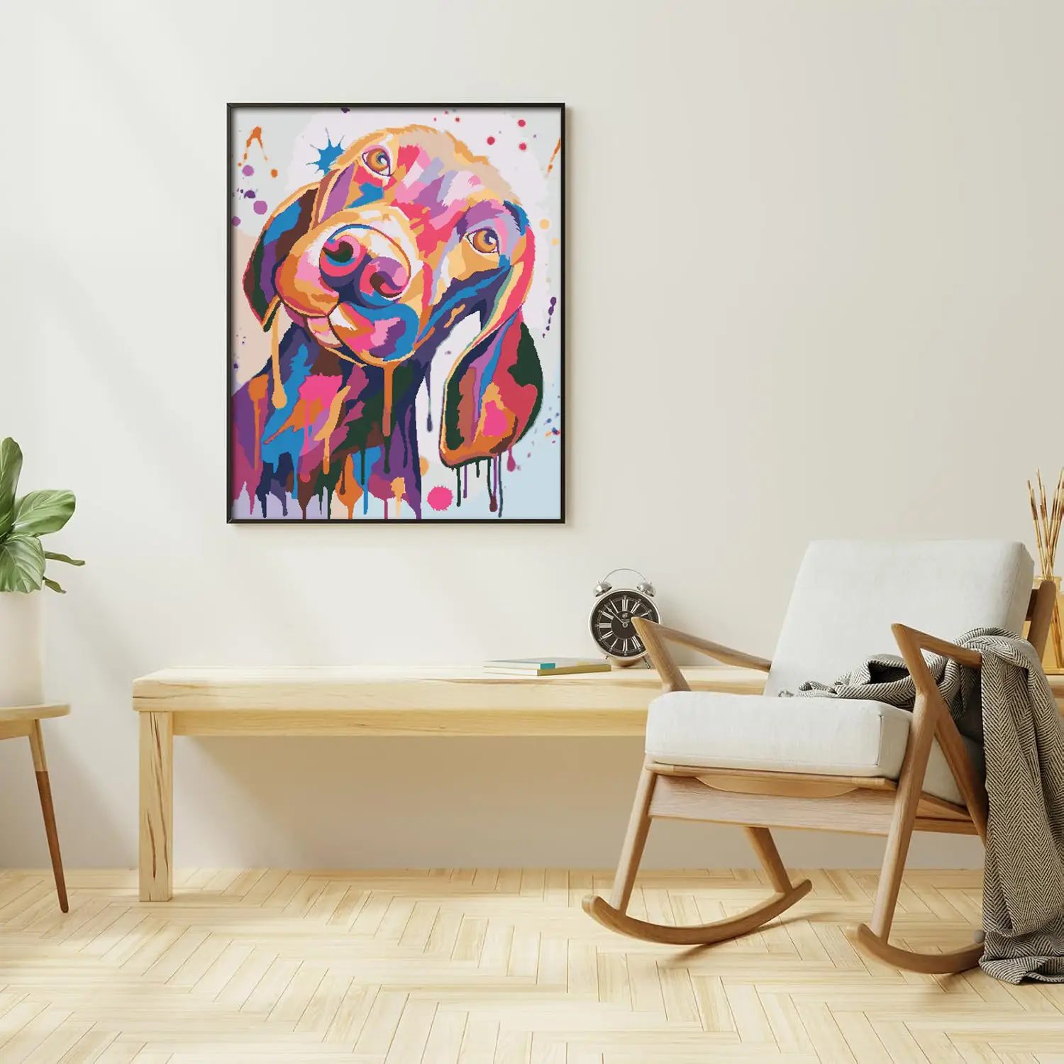 - Setzen Sie die Wandhaken in den Rahmen ein, und Ihre Leinwand ist fertig zum Aufhängen.