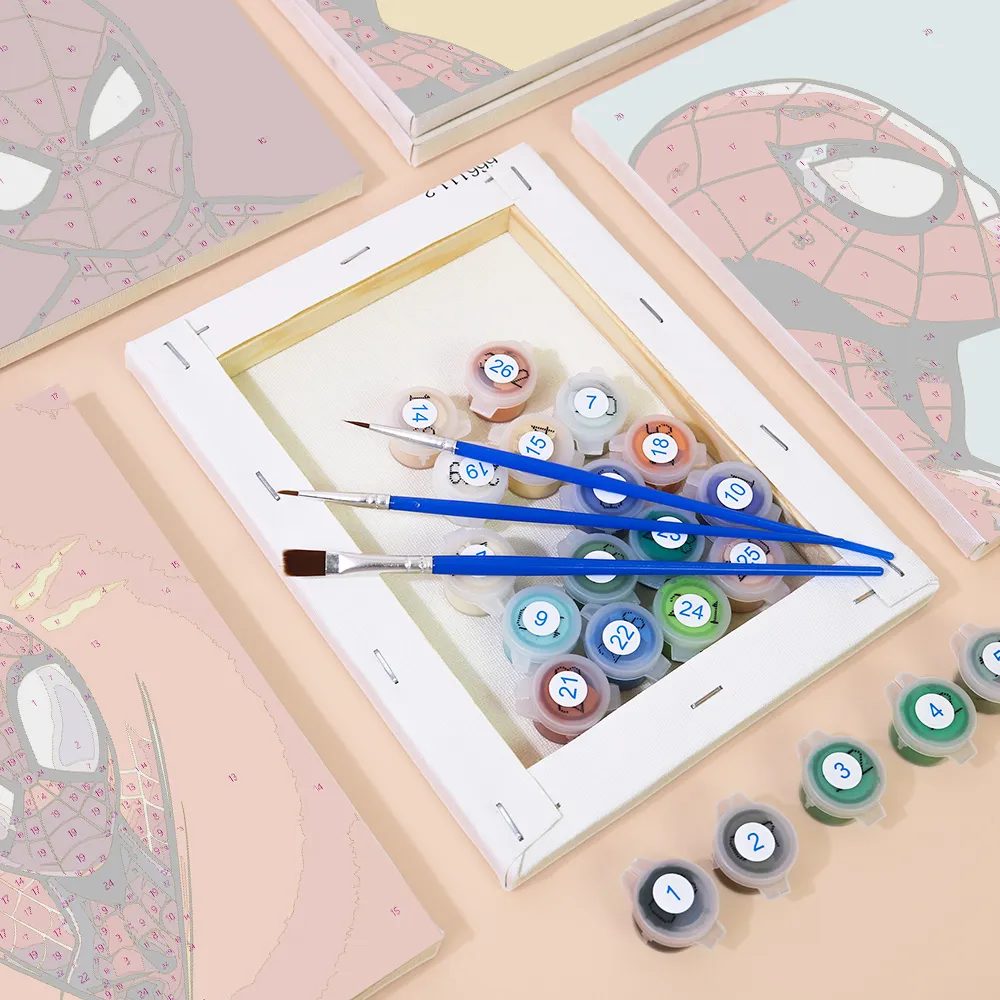 Das Mini-Malen-nach-Zahlen-Set „Erstaunlicher Spiderman“ bringt Action, Farbe und Superhelden-Flair direkt auf deine Leinwand. Das dynamische Motiv zeigt den berühmten Netzschwinger in ikonischer Pose – perfekt für kleine und große Marvel-Fans.