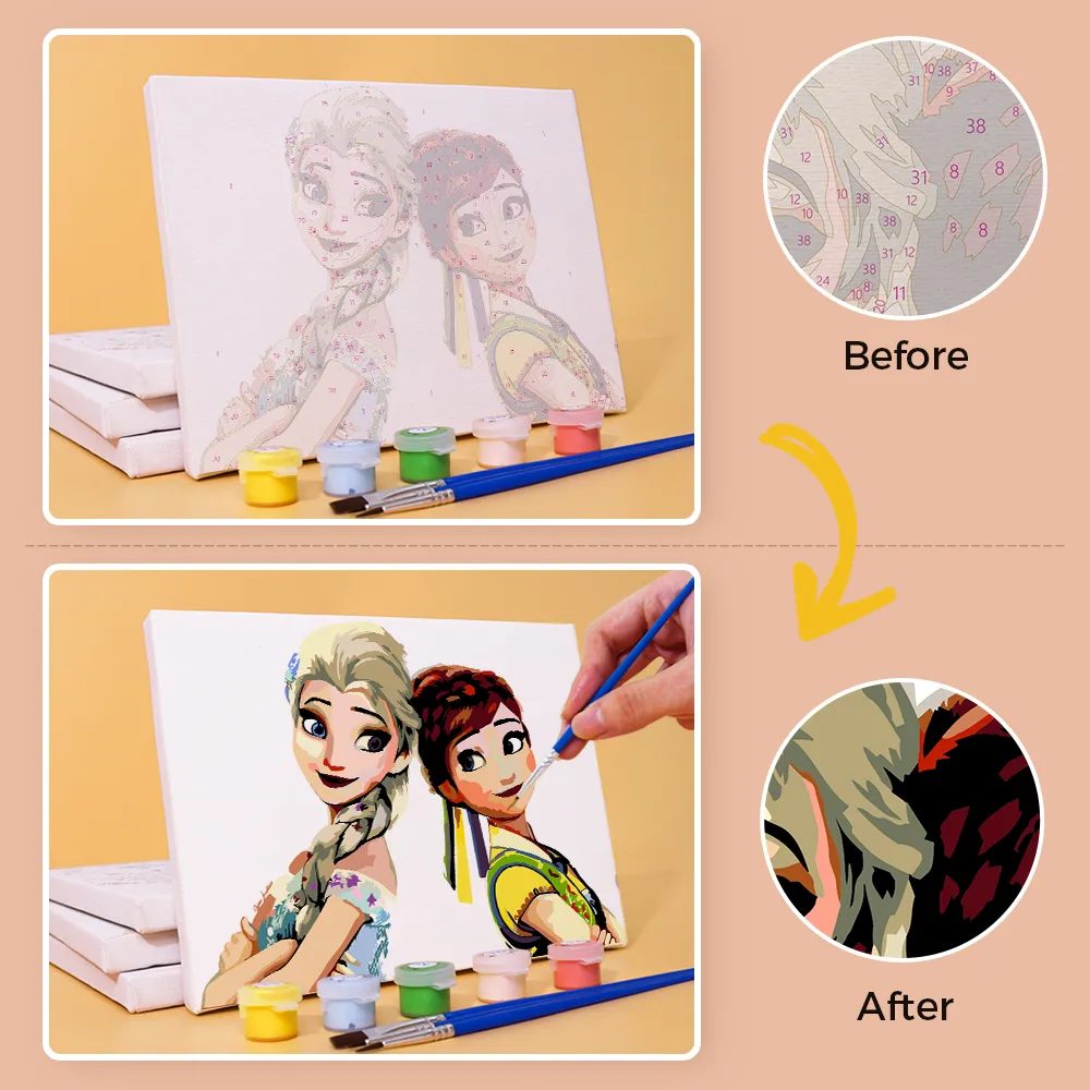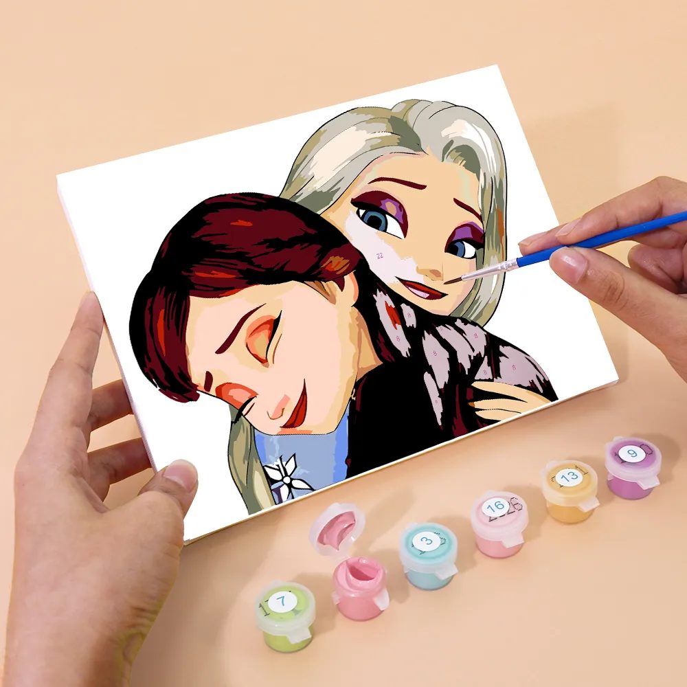Das Mini-Malen-nach-Zahlen-Set „Für immer Schwestern: Elsa & Anna“ zeigt die unzertrennliche Bindung zweier beliebter Prinzessinnen aus Arendelle. Dieses herzerwärmende Motiv mit winterlichen Farben bringt Magie, Liebe und Abenteuer direkt auf deine Leinwand.