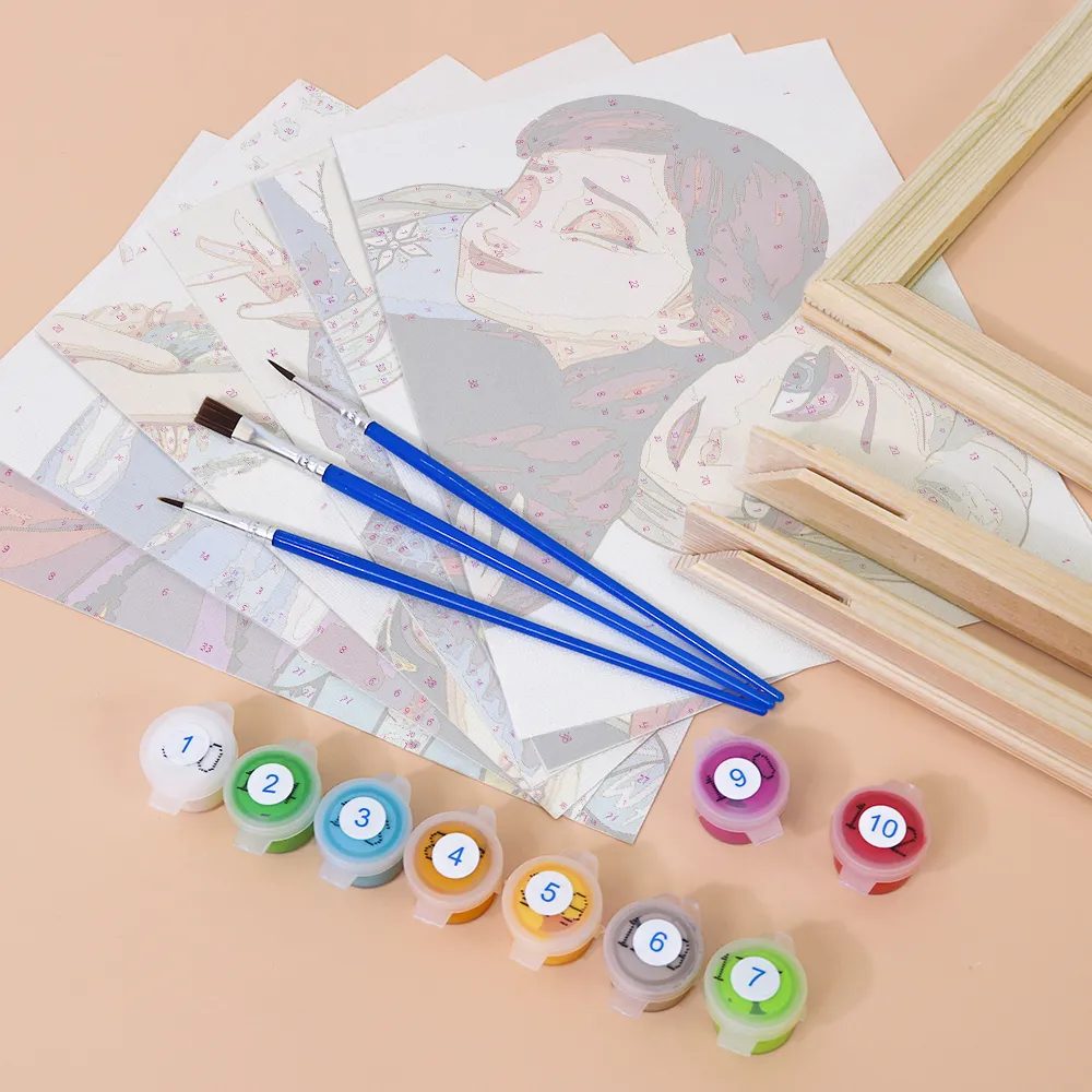 Sie erhalten alle notwendigen Werkzeuge und Zubehörteile, um Ihr Bild fertigzustellen. Wir bieten diese Gemälde ohne Rahmen, mit DIY-Rahmen und vorgerahmt an. Sie erhalten alle Werkzeuge entsprechend der von Ihnen gewählten Gemäldeart. Alle Gemälde werden mit dem folgenden Zubehör geliefert: