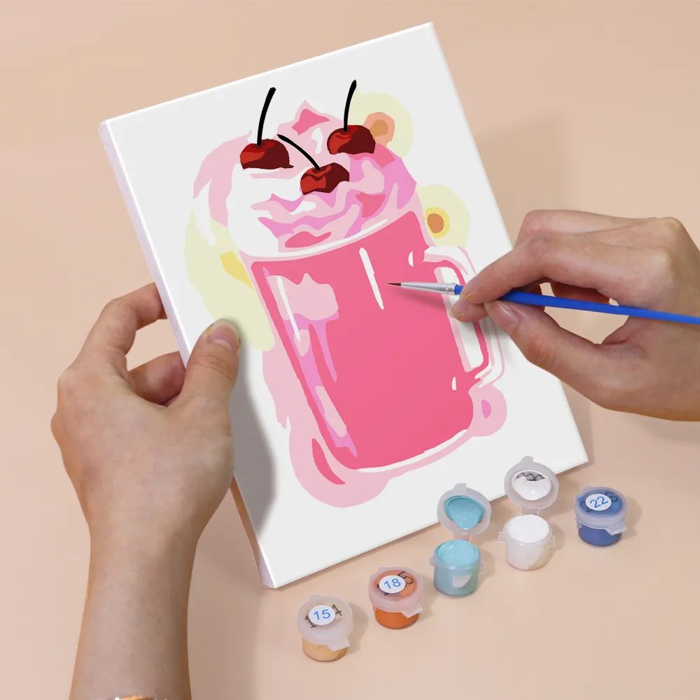 Das Mini-Malen-nach-Zahlen-Set „Shake mit Eiscreme“ ist ein süßes und farbenfrohes Motiv voller Genuss. Ob Erdbeershake mit Sahne, Schokoladensoße oder eine bunte Kugel Eis obendrauf – dieses Design ist ideal für Naschkatzen und kreative Genießer.