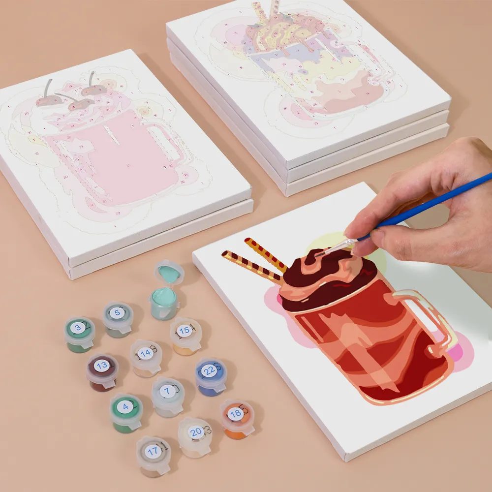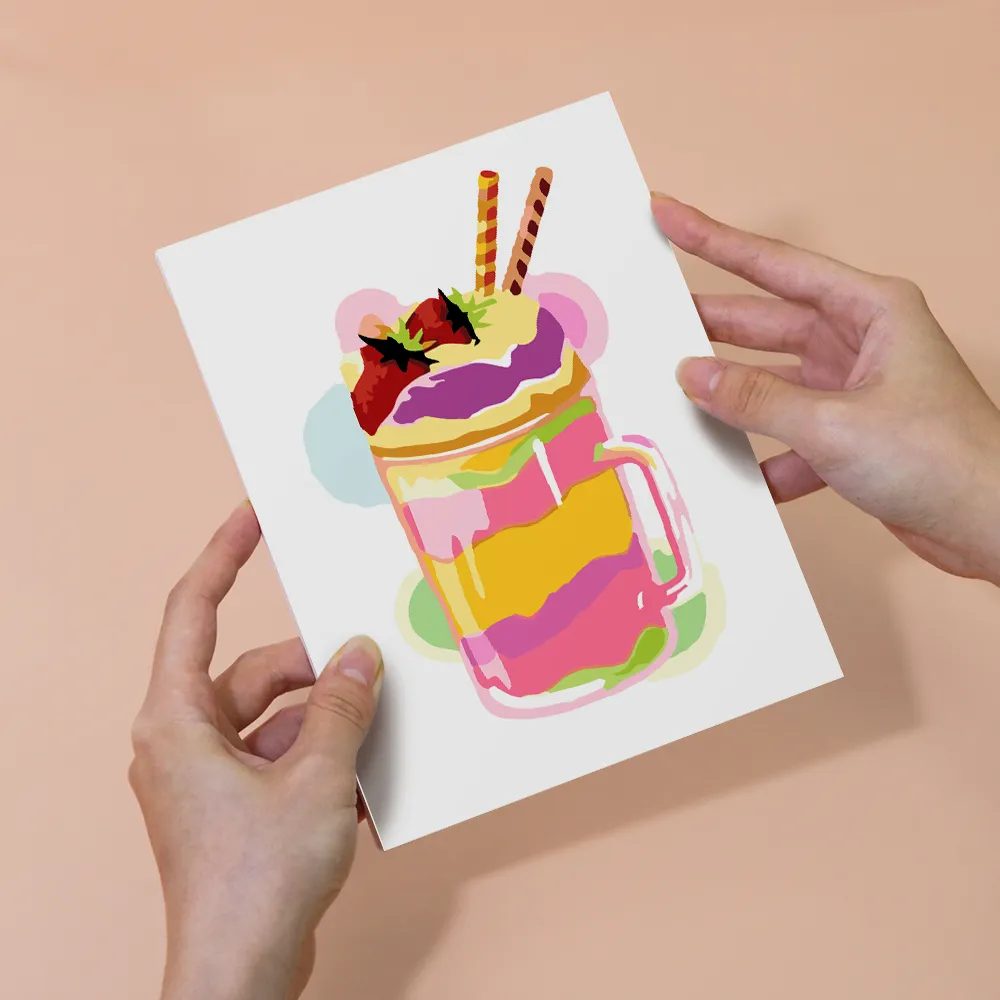 Das Mini-Malen-nach-Zahlen-Set „Shake mit Eiscreme“ ist ein süßes und farbenfrohes Motiv voller Genuss. Ob Erdbeershake mit Sahne, Schokoladensoße oder eine bunte Kugel Eis obendrauf – dieses Design ist ideal für Naschkatzen und kreative Genießer.